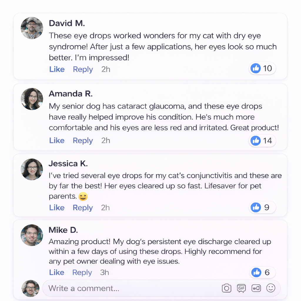 Many pet parents report visible improvement in redness and irritation within the first 7–14 days. For cloudiness, consistent daily use (2 drops) delivers the best results over 3–4 weeks.
